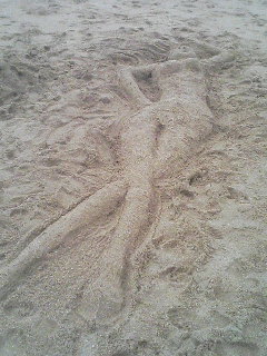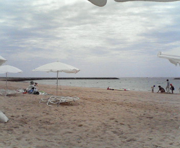 みな疲れ気味の表情ですが、ビーチに向かいます。 車で30分ほど移動して着いたのは「マエサトビーチ」 いかにも観光地の浜辺という感じで、最終日にしてようやくリゾート感を味わえそうな風景です。心なしか、若干お日様も覗いてきたような...? 写真は、同僚の女の子制作の「ミドリちゃん」。始めは「首里城を作る」と言ってた筈なんですけどね。ファミリー連れが8割の海岸に、等身大の裸体が登場です。 小一時間で海岸を後にして、空港に向かいます。 途中で昼食、ミックス丼。何となく大盛りを頼んだんですが、思ったよりボリュームがあって腹一杯でした。 4日間の旅行でグッタリしたまま、飛行機に乗り羽田で解散です。 いかんせん天候がよろしくなかったので、沖縄の魅力も半減だったように感じますが、それはそれ。同僚の親睦と言う意味ではそれなりに良かったんではないかと。 帰宅直後、「次の日は仕事かぁ」とブルーになりました。 |